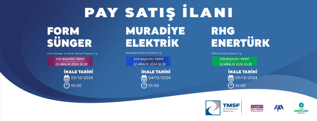 Tasarruf Mevduatı Sigorta Fonu (TMSF), yenilenebilir enerji ve e-mobilite alanlarında öne çıkan yatırımlara sahip RHG Enertürk Enerji Üretim ve Ticaret AŞ, Muradiye Elektrik Üretim AŞ ile Form Sünger ve Yatak Sanayi Ticaret AŞ’yi, Hazine mülkiyetinde bulunan yüzde 100 hisseleriyle satışa sundu. Bu Satış işlemi, kapalı teklif ve açık artırma usullerinin bir arada uygulanacağı ihale yöntemiyle gerçekleştirilecek. İhaleye katılmak isteyenler, “Şartname”de belirtilen şartları yerine getirmeleri halinde teklif sunabilecek.