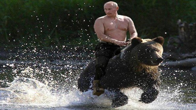 Putin aslında hiçbir zaman ayıya binmedi ancak ata bindiği görüntü sosyal medya kullanıcıları tarafından montajlanarak bir ayıya binmiş görüntüsü verilmesine neden oldu.