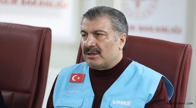 Bakan Koca, Türkiye Cumhuriyeti Sağlık Bakanlığı olarak deprem sürecinde ilk önceliklerinin yaralıların acil tedavisi ve ardından güvenli bölgelere nakli olduğunu belirterek, "Afet bölgesinde kullanılır durumdaki hastanelerimize ek olarak 27'si yabancı dostlarımız tarafından kurulan toplam 35 tam teşekküllü ameliyathanesi olan sahra hastanemiz ve 110 acil müdahale birimimizle yerinde sağlık hizmetini vermeye devam ediyoruz. Bu sağlık kuruluşlarımız, yaralılarımıza hızla ilk müdahalelerin yapılmasında büyük bir performans sergilemiştir. Yereldeki ekiplerimizin yanı sıra afet bölgesine sevk ettiğimiz 1253 ambulans ve 245 UMKE ekibi, sürekli görev yapmaktadır. Bunlarla birlikte 14 hava ambulansımız, Cumhurbaşkanlığımızın uçakları ile Türk Silahlı Kuvvetlerine ait uçak ve gemilerle yaklaşık bir hafta içinde 52 bini aşkın yaralımızı hızla bölge dışına naklettik." ifadesini kullandı.İkinci aşamada bölgede bulunan depremzedelerin sağlık ihtiyaçlarını karşılamak üzere harekete geçtiklerini söyleyen Koca, 112 Acil ve UMKE ekiplerinin de yerleşim yerleri ve köyleri karış karış dolaşarak sağlık taramaları gerçekleştirdiğini, gerekli ilaçları temin ettiğini ve hijyen malzemelerini dağıttığını vurguladı.Koca, sağlık tesislerinde "Sendromik Sürveyans"ın etkin bir şekilde takip edildiği bilgisini vererek, "Bölgedeki şebeke sularından düzenli olarak aldığımız numuneleri analiz ediyor ve sonuçlarını vatandaşlarımıza duyuruyoruz. Bölge genelinde ilaçlama ve kireçleme çalışmalarına hız kesmeden devam ediyoruz. Depremzedelerimize ve bölgede çalışan ekiplere tetanos aşılarını yapıyoruz. Aynı şekilde çocukluk çağı aşılamaları da aksamadan devam ettiriliyor. Şu ana kadar halk sağlığını tehdit edecek bir durumun ortaya çıkmamış olması bu sıkı tedbirler sayesindedir ve bundan sonrası için de bu tedbirleri sıkı şekilde sürdürmeye kararlıyız." dedi."Tedirgin olacak bir durum söz konusu değil"