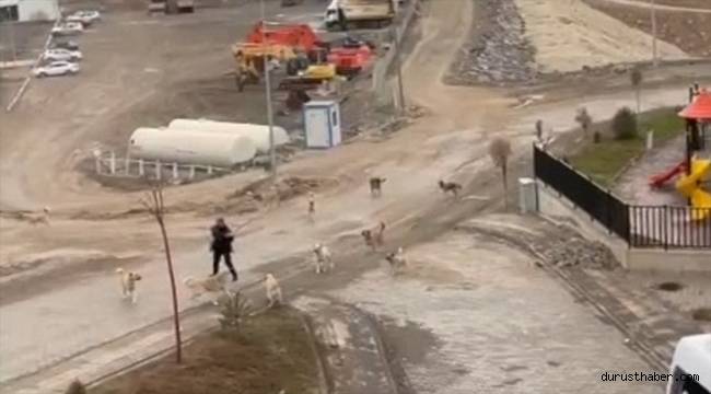 Yusufeli yeni yerleşim yerinde yürüyen bir kişi, çevredeki sahipsiz köpeklerin üzerine geldiğini fark etti.