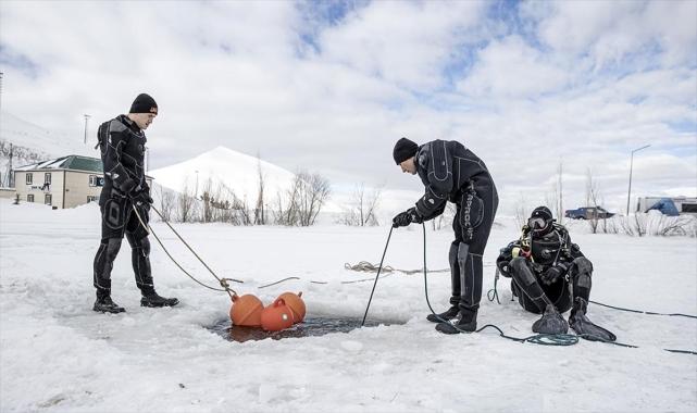 Her yıl binlerce yerli ve yabancı turistin kış tatilini geçirmek için geldiği, Erzurum'daki Palandöken Kayak Merkezi'nde görevli Jandarma Arama ve Kurtarma (JAK) ve Sualtı Arama Kurtarma (SAK) timleri, turistlerin güvenliği için görev yapıyor. Kış aylarında yurt içi ve dışından gelen kayak tutkunlarının ilgi gösterdiği Palandöken Kayak Merkezi'nde, Erzurum İl Jandarma Komutanlığı JAK ve SAK ekipleri, görevlerini 24 saat esasına göre sürdürüyor. Palandöken'in 2 bin 250 rakımındaki karakolda gece gündüz hazır bulunan 12 kişilik JAK timi, kayak esnasında düşüp yaralanma, dağda mahsur kalma ve kayak merkezinde oluşabilecek birçok olumsuzluğa karşı görev yapıyor.Terörle mücadelenin yanı sıra her türlü arama kurtarmada başarılı faaliyetler yürüten JAK ile SAK timleri, kış turizminde adını duyuran Palandöken Kayak Merkezi'nde huzurlu ve güvenli kayak için hazır kıta bulunuyor. Komandolar, 3 bin 200 rakımlı noktadaki Ejder zirvesi dahil uzunluğu 62 kilometreyi aşan tüm pistlerde, kayaklı ve motorlu ekipleriyle sürekli devriye atıp belirli noktalara koydukları 26 güvenlik kamerasıyla alanın takibini yapıyor.Ekipler, kayak merkezindeki güvenliği sağlarken diğer yandan da kendilerini geliştirmek için eğitim ve tatbikatlarını sürdürüyor. JAK ekipleri, senaryo gereği bir vatandaşın, kayak yaparken pistten çıkarak yaklaşık 30 metre aşağıdaki ormanlık alana düşüp yaralanması ihbarı üzerine harekete geçerek, kısa sürede modern araç ve ekipmanlarıyla olay yerine ulaştı.Ormanlık alana, yol kenarındaki bariyerlere halatlarla kurdukları sistemle inen ekipler, yaralıyı olay yerindeki ilk müdahalesinin ardından, sedyeyle düştüğü alandan kurtarıp, en yakın sağlık ekiplerine ulaştırdı. Kar kalınlığının bu yıl en fazla 143 santimetreye ulaştığı merkezde çığ düşmesi durumunda da görev yapan JAK timleri, bu riske karşında teyakkuz halinde bulunuyor.Tatbikatlarla performanslarını artıran tim, senaryo gereği 2 bin 500 rakımda kayak yaparken kontrolü kaybedip pistin kenarındaki doğal gölete düşen bir vatandaşın kurtarılmasına müdahale etti. Pistteki turistlerin ihbarıyla kısa sürede kar motorlarıyla bölgeye intikal eden ekipler, geniş güvenlik önlemi alıp durumu SAK timlerine bildirdi.Kayakçının düştüğü bölgeye ulaşan 6 kişilik SAK timi, ağırlığı yaklaşık 30 kilogramı bulan teçhizatlarını kuşandıktan sonra derinliği 8 metreyi, alanı da 750 metrekareyi bulan gölete tüplü dalış yaptı. Gölde yaklaşık 10 dakika arama-tarama yapan dalgıçlar, senaryonun parçası olarak zeminde buldukları kayakçının cesedini yüzeye çıkarıp, sağlık ekiplerine teslim etti.Zinde kalmak için devamlı eğitim yapan JAK timleri son olarak tırmanış yaptıkları 25 metre yükseklikteki yapay buz duvarının ortasına gelince Türk bayrağı açtı. Ekiplerin, hava sıcaklığının sıfırın altında 8 dereceye düştüğü ve şiddetli rüzgarın etkili olduğu dağda başarıyla gerçekleştirdiği tatbikat, gerçeği aratmadı. Muhabir: Talha Koca