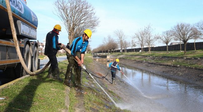 Büyükşehir Belediyesi Çark Deresi’nin şehir merkezinden geçen bölümlerinde toprak, ot, taş ve çöp temizliği yaparak derenin doğasını koruyarak haşerat ve kötü koku oluşumu önlüyor.