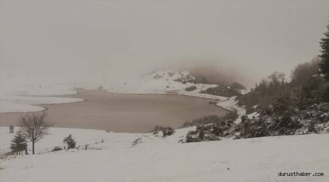 Yağışın ardından yayla ve mahalleler beyaz örtüyle kaplandı.İlçe merkezine yaklaşık 32 kilometre uzaklıkta bulunan yüksek noktalarda kar aralıklarla sürüyor.