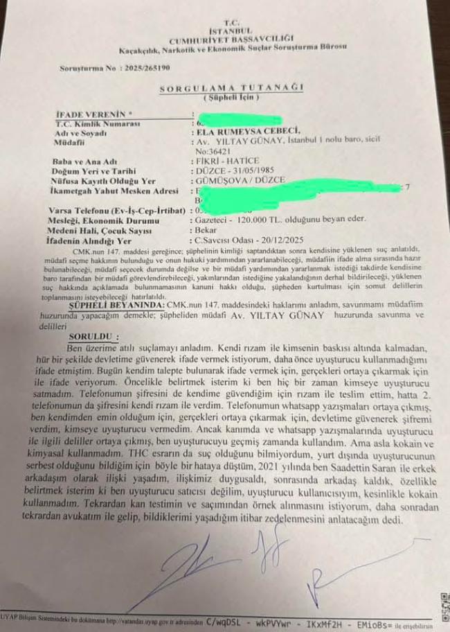 Açıklamalarda, Cebeci’nin kendisini “satıcı değil kullanıcı” olarak tanımladığı, yeniden test yapılmasını talep ettiği ve avukatıyla birlikte tekrar ifade vermek istediğini belirttiği iddia ediliyor. Tartışmanın merkezinde ise bu beyanların hukuki niteliğinin nasıl değerlendirileceği konusu bulunuyor.
