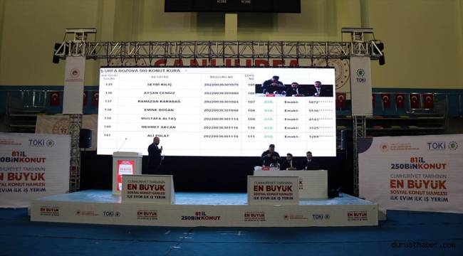 Kurada Bozova ilçesinde 500, Ceylanpınar ilçesinde 130, Suruç ilçesinde 250 ve Hilvan ilçesinde ise 100 konut sahibini bulacak.Kentte 4 gün sürecek kura programı 16 Kasım'da sona erecek.
