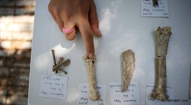 İpek, AA muhabirine, farklı alanlarda uzmanlaşmış kişilerden oluşan ekiple Hitit medeniyetini tüm yönleriyle anlamaya çalıştıklarını söyledi. Kazılarda binlerce yıl öncesiyle ilgili ipuçları veren her bir bulgunun, uzmanı tarafından detaylıca incelendiğini belirten İpek, bu branşlardan birinin de kazılarda bulunan hayvan kemiklerini inceleyen zooarkeoloji olduğunu kaydetti.Kazılarda bulunan hayvan kemiklerinin dönemin beslenme alışkanlıkları hakkında fikir verdiğine dikkati çeken İpek, "Şapinuva'daki kazıda bulduğumuz kemikler de burada inceleniyor ve bir sonuca varılıyor. Şapinuva'da binlerce kil tablet bulundu. Kemikleri inceleyerek yaptığımız tespitlerin büyük bir çoğunluğunu bu kil tabletlerde geçen ifadelerle doğrulayabiliyoruz." dedi. Zooarkeoloji alanında akademik çalışmaları bulunan ve kazı ekibine 5 yıl önce katılan Ankara Hacı Bayram Veli Üniversitesi Arkeoloji Bölümü doktora öğrencisi Pınar Perçin Gerçek de kemik parçalarını inceleyerek, dönemin beslenme alışkanlıkları hakkında araştırma yapıyor.Yaklaşık 9 bin parça hayvan kemiği inceleyerek İngilizce hazırladığı "Anımal Economy and Consumptıon In The Admınıstratıon Sector Of Hıttıte Capıtal Šapinuwa" makalesi bir dergide yayımlayan Gerçek, aynı ekipte yer alan arkeolog eşiyle çalışmalarını sürdürüyor. Gerçek, AA muhabirine, Şapinuva'daki arkeolojik kazılarda bulunan, bir dönem metal atölyesi olarak kullanıldıktan sonra şehrin atıklarıyla doldurulmuş alanda binlerce hayvan kemiği bulunduğunu söyledi.Kemiklerin ait olduğu dönemle ilgili birçok bilgi verdiğini belirten Gerçek, "Buradan çıkan atıklara baktığımızda koyun, keçi, sığır gibi hayvanların kemikleri var. Bunlar temel türler. Bunun dışında farklı türler de var. Yaban hayvanları arasında kızıl geyik görebiliyoruz. Kızıl geyik bizim için coğrafya hakkında ekolojik olarak ciddi bilgiler veriyor. Döneminde Şapinuva ve çevresinin ormanlık araziye sahip olduğunu rahatlıkla söyleyebiliyoruz. Tavşan, kuş kemikleri ve kaplumbağa kabuğuna ulaştık. Bunlar da döneminde tüketilen türler olduğunu bize gösteriyor." dedi.Hititler günlük hayatta domuz tüketmiyorŞapinuva'nın Tepelerarası ve Ağılönü diye adlandırılan iki bölgeden oluştuğunu dile getiren Gerçek, Hititlerin domuzu yalnızca dini ritüellerde kullandığını, şehrin dini bölgesini temsil eden Ağılönü bölgesinden çıkan kemiklerden belirlediklerini kaydetti.Bu konuda yapılan tespitlerin bölgeden çıkan kil tabletlerle desteklendiğine dikkati çeken Gerçek, "Tabletler dini ritüellerde domuzların kullanıldığını söylüyor. Yazılı kaynaklara baktığımız zaman domuzun ve köpeğin ritüelik olarak kullanılan türler olduğunu görüyoruz. Yani zooarkeolojik buluntularla yazılı tabletler birbiriyle örtüşüyor. Ağılönü'nde yanmış kuş kemikleri mevcut. Bu da ritüel bağlamında Hititlerin ya da Şapinuvalıların bu türleri seçtiğini bize gösteriyor." diye konuştu. Gerçek, şunları söyledi: "Hititlerde domuz, günlük tüketimde kullanılmıyor. Bunu yazılı belgelerde de net bir şekilde görüyoruz. Özellikle dini alanlara domuz ve köpeğin yaklaşmaması gerektiği bilinçli şekilde tabletlere yazılmış. Bizler de zooarkeolojik çalışmalarımızda bu sonuçlara varıyoruz. Benim çalıştığım alan mutfak atıklarından oluşuyor. Bu mutfak atıkları arasında oldukça az sayıda domuz kemiğine ulaşıyoruz ve bu kemikler üzerinde herhangi bir kasaplık izi görememiştik. Domuzun arınma ritüeli kapsamında kullanıldığı ve tanrılara sunulduğu söyleniyor. Belki de kişi kendi içinde kötü olduğu noktalarda domuzu kurban ediyordu çünkü yazılı belgelerde domuz ve köpeğin dini alanların yakınından dahi geçmemesi gerektiği özellikle belirtiliyor." Yüksek lisans çalışması kapsamında 9 bin kemiği incelediğini bildiren Gerçek, "Şu anda kazı depomuzda bir oda dolusu kemik var. Bu da Şapinuvalıların beslenmesinde hayvanın ne kadar önemli bir noktada olduğunu gösteriyor. Zaten zooarkeolojik çalışmaların temelinde bu var. Bugün de dahil olmak üzere kesintisiz ilişkiyi açıklayabilmek için bu bilim dalını arkeolojiyle birlikte yoğurarak ortaya daha anlamlı ve nitelikli sonuçlar çıkarmayı amaçlıyoruz." bilgisini paylaştı.