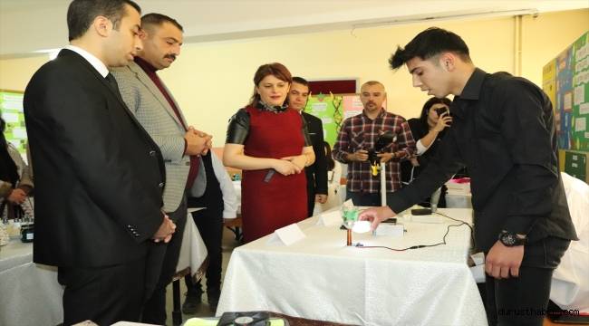 Sarıoğlan ilçesinde Şehit Hacıbey Kaya Anadolu Lisesi öğrencilerinin çalışmaları bulum fuarında sergilendi.