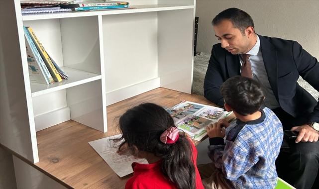 Kaymakam Fatih Güner, çalışma masası verilen öğrencileri ziyaret ederek, başarı diledi.