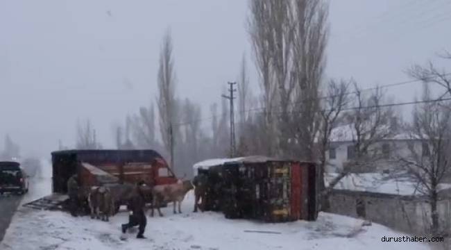 Kaza, Kahramanmaraş-Kayseri Karayolu Sarız ilçe sınırı mevkiinde meydana geldi. Çörekdere Mahallesi istikametinde seyir halinde olan kamyon sürücüsü, kar yağışı ve buzlanma nedeniyle direksiyon hakimiyetini kaybetti. Yoldan çıkan kamyon devrildi. Olay yerine polis ve sağlık ekipleri sevk edilirken kazada can kaybı olmadığı belirtildi.