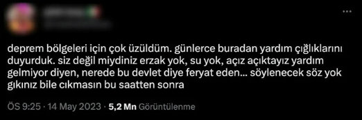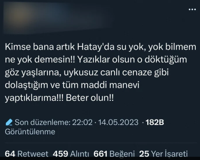 Ortaya çıkan sonuçlardan rahatsız olan muhalif kesim, depremzedeleri hedef alan ifadeler kullandı.Tepki topladı