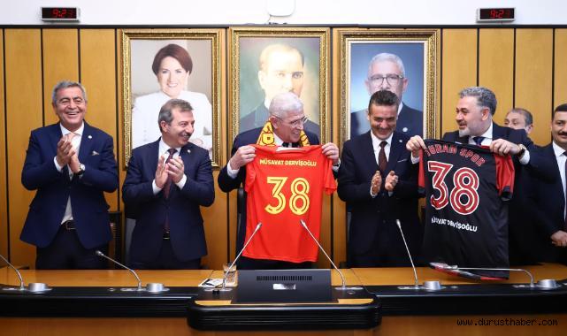İYİ Parti Genel Başkanı Dervişoğlu’na Kayserispor FormasıGrup toplantısının ardından İYİ Parti Genel Başkanı Müsavat Dervişoğlu’na Kayserispor forması hediye eden Sedat Kılınç, Kayseri teşkilatıyla genel başkanı ziyaret etti. Kayseri’nin en değerli markası olarak nitelendirdiği Kayserispor’a verdiği desteği dile getiren Kılınç, Genel Başkan Dervişoğlu’nun Kayserispor taraftarlarına selam gönderdiğini belirtti.