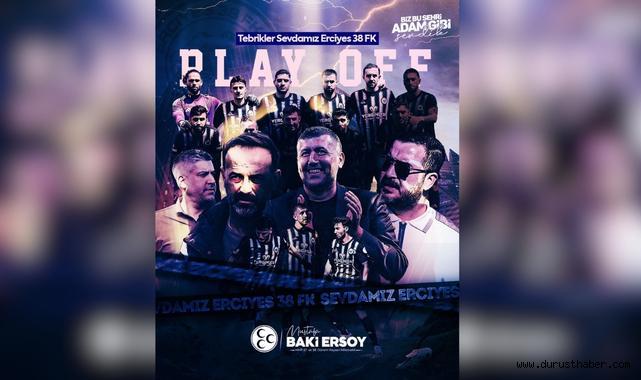 Mustafa Baki Ersoy, başarının sadece sahada değil, tribünde ve yönetim odasında sağlanan birliktelikle geldiğini vurguladı. Cefakar ve fedakar olarak tanımladığı Erciyes 38 Fk taraftarlarının takımın itici gücü olduğunu belirten Ersoy, Ahmet Dirgenali başkanlığındaki yönetim kurulunun kulübü play-off hedefine ulaştırarak büyük bir sorumluluğu yerine getirdiğini kaydetti. Play-off sürecinde de tüm şehrin kenetlenerek Erciyes 38 FK’yı bir üst lig yolunda yalnız bırakmayacağına olan inancını dile getiren Ersoy, "Biz bu şehri adam gibi sevdik" sloganıyla desteğini bir kez daha yineledi.
