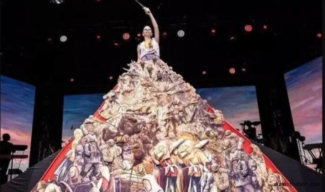 Bir ayda tamamlanan, 3.20 metre yüksekliğinde ve 4.5 metre enindeki kostüm, konser sırasında izleyicilerin karşısında Simge'ye giydirildi.