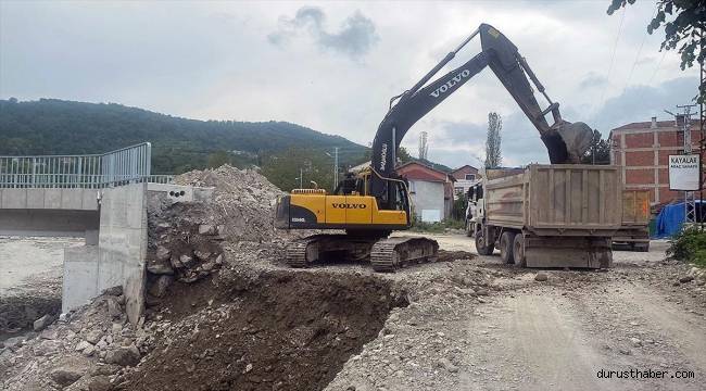 Kent merkezi ile Ayancık, Türkeli ve Erfelek ilçelerinde sağanağın ardından zarar gören köy yolları, köprüler ve menfezlerdeki onarım çalışmaları devam ediyor.