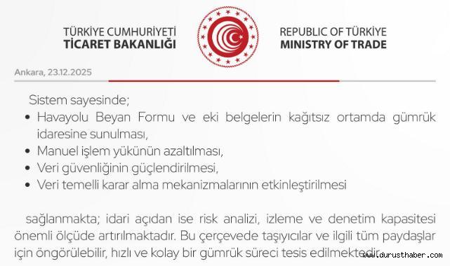 # havayolu taşımacılığı# Sistemi Artık Tamamen Dijital# Beyan Sistemi
