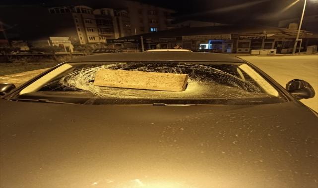 Sivas'ın Şarkışla ilçesinde bir kişinin park halindeki otomobilin camını bordür taşını fırlatarak kırması güvenlik kamerasınca kaydedildi.