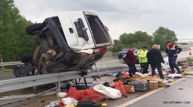 E.B. idaresindeki 34 EV 7260 plakalı hafif ticari araç, D-100 kara yolu Aşağısarıca köyü yakınlarında bariyerlere çarptıktan sonra devrildi.