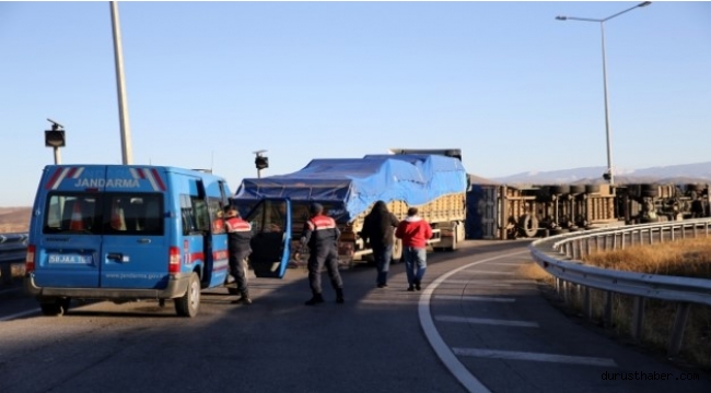 Sivas'ta kapı yüklü tırın devrilmesi sonucu Sivas-Kayseri kara yolu Kovalı Kavşağı'nda ulaşım sağlanamıyor.