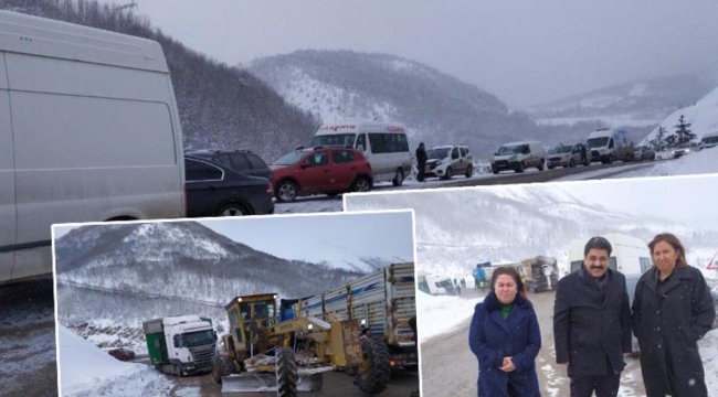 Sivas-Giresun Karayolu 2 bin 100 rakımlı Geminbeli Geçidinde yoğun kar yağışı etkili oluyor. Kar yağışı ve buzlanmayla birlikte geçitte ağır tonajlı araçlar yolda kaldı. Yol trafiğe kapanırken metrelerce araç kuyruğu oluştu.Onlarca araç yolda mahsur kaldı. Mahsur kalanlar arasında AK Parti Sivas Milletvekili Semiha Ekinci ve AK Parti İl Başkanı Hakan Aksu da bulunuyor. Ekipleri yolu yeniden trafiğe açmak için seferber oldu. 1 saatin ardından yol ulaşıma yeniden açıldı.Milletvekili Semiha Ekinci, "Suşehri Danışma Merkezi toplantımıza giderken Geminbelin'de yabancı bir tırın kayması sonucu yol kapanmış. Sivas'ın yazı kadar kışı da güzel. Her nimetin bir külfeti var. Bu tür yolda kalmalarda kazalarda bu işin külfeti. Ama hamdolsun can kaybı yok'' dedi.