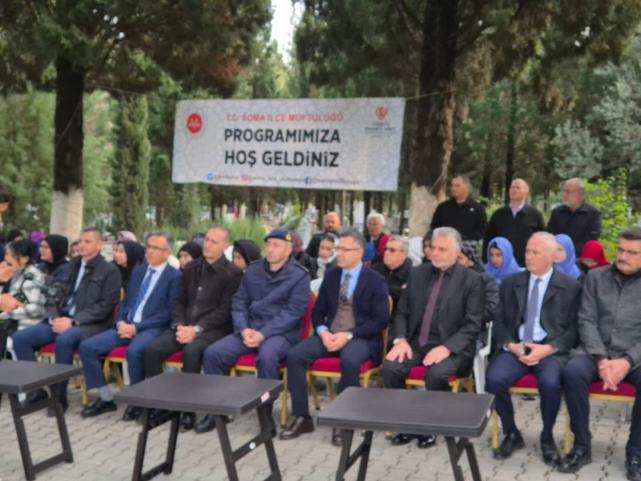Anma törenine Soma Kaymakamı Ünal Koç, Manisa Büyükşehir Belediye Başkanı Besim Dutlulu, Soma Belediye Başkanı Sercan Okur, ilçe protokolü, kamu kurum temsilcileri, siyasi parti yöneticileri, sivil toplum kuruluşları, şehit aileleri ve din görevlileri katıldı. Soma Müftülüğü’ne bağlı Diyanet Gençlik Merkezi’nden de dört yüzü aşkın genç programda yer aldı.