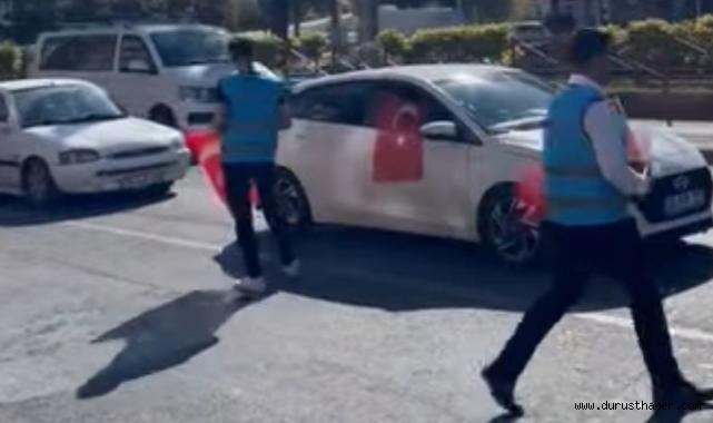 Saadet Partisi Talas Gençlik Kolları Cumhuriyetin 101. Yılında gerçekleştirdiği etkinlikte araç sürücülerine ve vatandaşlara Türk Bayrağı dağıttı.