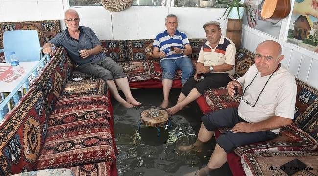 Yaz sıcaklarının bunalttığı bugünlerde müşterilerin etrafına sedirler konulan bölüme aktarılan suya ayaklarını sokarak çay içmeleri ilginç görüntüler oluşturuyor.Kahvehane işletmecisi Nadir Irmak, AA muhabirine, iş yerinin 1927 yılından beri Boyabat'ta "Karafakırın Kahvehanesi" olarak hizmet verdiğini söyledi.Bahçeleri sulamak için kullanılan su kanalının kahvehaneden geçtiğini belirten Irmak, "Müşterilerimizin ayaklarını sokup serinlediği havuz durgun değil, akıntı halinde." dedi.Irmak, kanaldaki suyun 115 yıl önce su gücüyle çalışmaya başlayan bitişikteki pirinç fabrikasının çarkını çevirdiğini anlatarak, şu ifadeleri kullandı:"Tabii ki elektrik gelince suya ihtiyaç kalmamış ama buradan geçen su Bağlar Mahallesi'nde bağ ve bahçeleri suluyor. Biz buradaki havuz çevresine sedir köşesi yaptık. Müşterilerimiz, misafirlerimiz ayaklarını suya sokup serinliyorlar. Arada bir fazla suyu da kahvehanenin içine doğru akıtarak vatandaşlarımızın serinlemesini sağlıyoruz."Kahvehane içinde 17 metre derinliğinde su kuyusu bulunduğuna da işaret eden Irmak. "Bu kuyu da geçmişte Yenimahalle'nin su ihtiyacını karşılıyordu. Kuyuyu temizledik, suyu temiz. Burada her şey doğal. Müşterilerimiz buz gibi kuyu suyunu içerek içlerini serinletiyorlar." diye konuştu.- "Serinlemek için mükemmel bir yer"Müşterilerden Cemal Atılgan ise kanaldaki suyun Kolaz Çayı'ndan geldiğini aktardı.Atılgan, "Bu su kanalı yukarılardan bağ ve bahçeleri sulayarak buraya geliyor. Ark buradan geçtiği için kahveci de bunu değerlendirip çok güzel bir oturma yeri yapmış. Yazın sıcaklığından bunalıp burada ayaklarımızı suya sokup serinliyoruz. Serinlemek için mükemmel bir yer." dedi