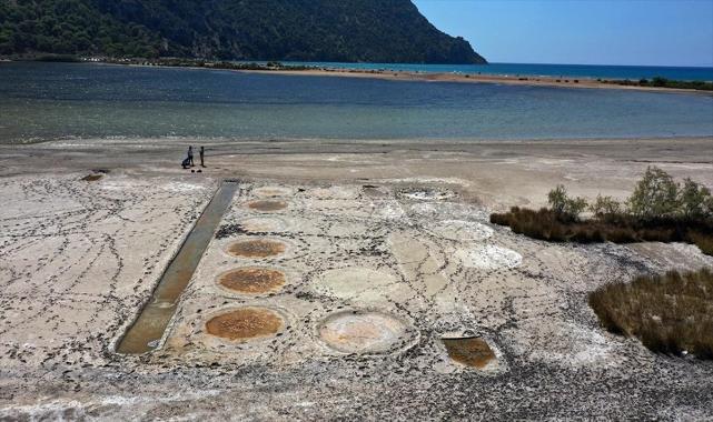 UNESCO Dünya Mirası Geçici Listesi'nde yer alan Kaunos Antik Kenti'ndeki çalışmalar sırasında 2005'te ortaya çıkarılan sahada, antik kent kazı heyeti inceleme yaptı. Tesisteki tuz tavalarının içindeki tuz oluşumları tesisin günümüze kadar işlevini yitirmediğini gösterdi. Kazı Başkanı Doç. Dr. Ufuk Çörtük, suların çekilmesiyle gün yüzüne çıkan antik tuz tesisi ile ilgili AA muhabirine, biri ticaret, diğerinin askeri olmak üzere tespit edilen iki limanıyla Kaunos Antik Kenti'nin bir liman şehri olduğuna söyledi.Tuz sahasında göl suyunun çekilmesiyle ortaya çıkan tuz tavalarını kazı ekibiyle incelediklerini belirten Çörtük, tuzun geçmişten bugüne insanoğlu için önemini dile getirdi. Çörtük, antik kaynaklarda Kaunos tuzunun farmakolojide göz merhemi yapımında katkı maddesi olarak kullanıldığının yer aldığını belirtti.Antik yazar Pirirus'un, "Tuz olmasaydı uygarlık da insanlık da olmazdı" sözünü hatırlayan Çörtük, "Tuz, insan vücudunun önemli bir ihtiyaç maddesi. Aynı zamanda da insanoğlunun bir geçim kaynağıdır. Antik dönemde mühendislik harikası bir yöntemle tesisin bu bölgeye kurulduğunu görüyoruz. Yaptığımız deneysel arkeolojik çalışmalarda yılın 3-4 aylık tuz üretim döneminde ortalama 4-5 ton tuz üretildiğini biliyoruz. Üretilen tuzların çuvallarla limana taşınarak gemilerle Yunanistan, adalar ve ihtiyacı olan bölgelere ihraç edildiğini biliyoruz." diye konuştu. Çörtük, Kaunos tuzlasının antik dünyada bir benzeri henüz tespit edilmediğini savundu.Tuz tavalarının su altında kalması nedeniyle yılın büyük bölümünde görülemediğini ifade den Çörtük, "Şimdi eylülün sonlarındayız. Yağışların az ve sıcaklığın fazla olması nedeniyle bu sene tuz tavaları gerçekten görülebilir durumda. Bu konuya ilgisi olan kişileri de buraya Kaunos tuzlasını, tuz tavalarını görmeye de davet ediyorum." dedi. Muhabir: Ömer Kundakçı,Özgürer Deniz Kundakçı