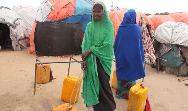 Başkent Mogadişu'nun dış mahallelerine kurulan derme çatma kamplarda yaşam mücadelesi veren, içlerinde çok sayıda yaşlı, çocuk, hamile ve engellinin olduğu aileler, susuzluk nedeniyle çaresiz durumda.