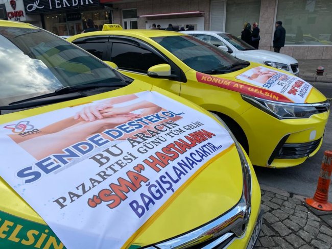 Kayseri’de yaşayan Spinal Müsküler Atrofi (SMA) Tip2 hastalığıyla mücadele eden Hasan Çınar Süyüm ve Melih Eymen Ceylan için 2 taksici Yusuf Mutlu ve Yaşar Avcı, bu pazartesi ve haftaya pazartesi olmak üzere toplam 2 gün elde ettikleri kazançlarını çocuklara bağışlayacaklar. Taksici Yusuf Mutlu, Bu pazartesi Hasan Çınar Süyüm için haftaya pazartesi ise Melih Eymen Ceylan için kazançlarını bağışlayacaklarını belirtti.