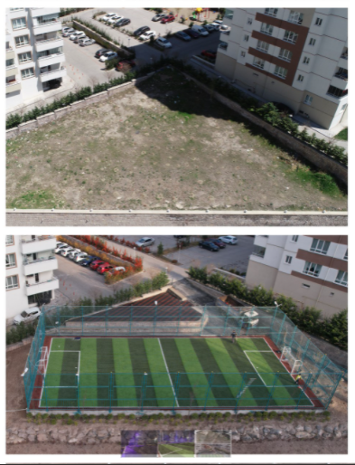 Mevlana Mahallesi Karasu ve Heves Caddelerinin kesiştiği bölgedeki binaların arasında bulunan atıl alanı değerlendiren Talas Belediyesi, bölgeye yepyeni bir görünüm kazandırdı. Çevre düzenlemesi tamamlanan alana çocuk oyun grupları ve dekoratif aydınlatmalar da eklendi. Böylece bölgeye hem estetik bir görünüm kazandırıldı hem de atıl duran alan, başta çocuklar ve gençler olmak üzere bölge sakinlerinin kullanacağı bir spor sahasına dönüştürülmüş oldu.