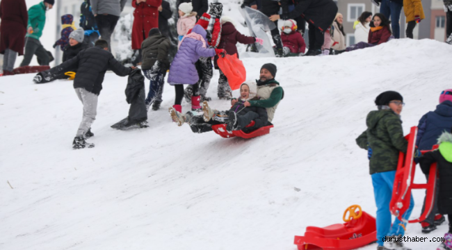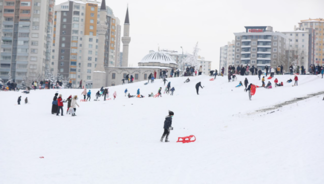 Talas Belediyesi tarafından kayak pistine dönüştürülen Mevlana Mahallesi’ndeki tepe, 7’den 70’e her yaştan Talaslının kayak keyfini doyasıya yaşadığı uğrak yeri oldu.Kimisi ellerinde poşetlerle, kimisi de küçüklüğünün kayak takımı ‘ayak kızağı’nı eline alıp TOKİ konutları karşısındaki “Talas’ın Erciyes’i”ne koştu.