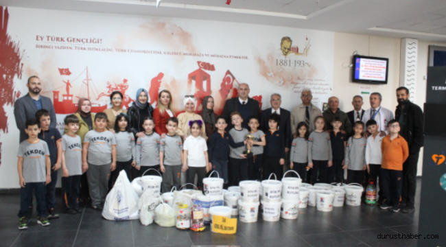 Talas Belediyesi, atık pil toplama kampanyasına katılan okulların biriktirdikleri pilleri teslim almaya başladı.
