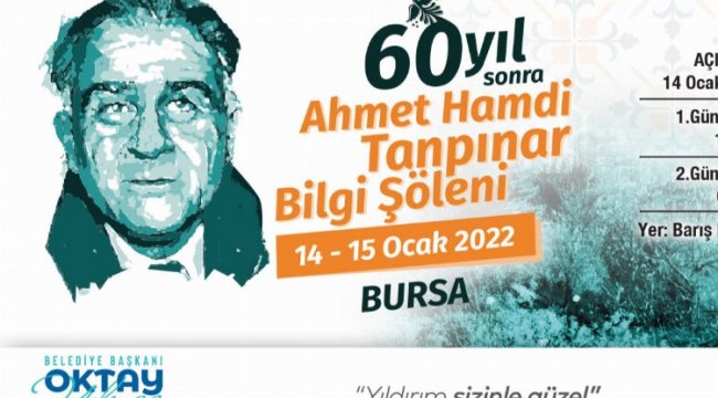 Yıldırım Belediyesi, Türk Edebiyatı’nın önde gelen yazarlarından Ahmet Hamdi Tanpınar’ı, vefatının 60’ıncı yıldönümünde düzenleyeceği bilgi şöleni ile anıyor.