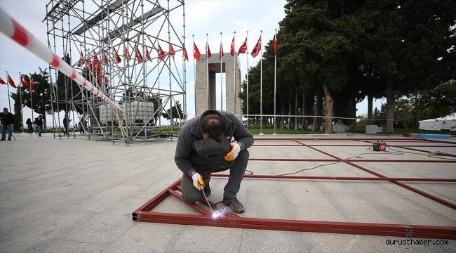 Şehitler Abidesi, İngiliz ve Fransız anıtları ile Anzak Koyu ve Conkbayırı'ndaki tören alanlarında çalışmalar yürütülüyor.Törenlere katılacak konukların oturacağı portatif tribünler, sahne, dinlenme odaları ile giriş ve çıkışlar için oluşturulacak güvenlik koridorlarının kurulumunun yanı sıra ihtiyaç duyulan bölgelerde peyzaj düzenlemesi gerçekleştiriliyor.Kültür ve Turizm Bakanlığı Çanakkale Savaşları ve Gelibolu Tarihi Alan Başkanı İsmail Kaşdemir, AA muhabirine çalışmalar hakkında bilgi verdi.Bu sene Çanakkale Deniz Zaferi'nin 108. yıl dönümünün idrak edildiğini hatırlatan Kaşdemir, Kara Savaşları'nın 108. yılı törenlerinin ise yarın ve ertesi gün gerçekleştirileceğini belirtti.Kaşdemir, "24 ve 25 Nisan'da Çanakkale'de hem Türk tarafı olarak biz törenlerimizi yapacağız hem de yabancı devletler kendi törenlerini icra edecek. Tabii ki her yıl olduğu gibi yine bu sene Avustralya, Yeni Zelanda, Fransa, İngiltere'den birçok misafirimiz gelecek. Devlet temsilcileri, büyükelçiler törenlere katılacak. Çanakkale'de gerçekten uluslararası boyutta önemli bir tören yapılmış olacak." dedi.Başkanlık olarak tören hazırlıklarını sürdürdüklerini anlatan Kaşdemir, "Şu anda son aşamaya geldi. Hem ülke içerisinden hem ülke dışından birçok davetlimiz Çanakkale'de buluşacak ve törenlerimizi hep birlikte huzur, barış ve esenlik içerisinde yapacağız." ifadelerini kullandı."Burada dost bir vatanın toprağındasınız"