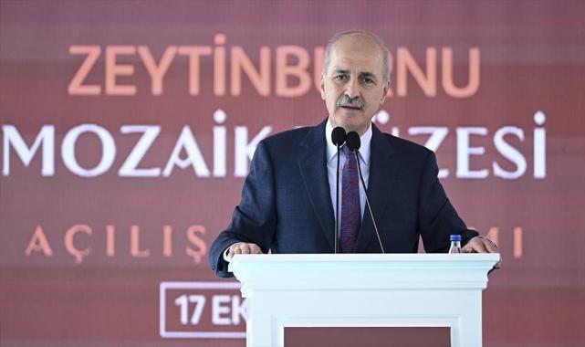 Kurtulmuş, eski Zeytinburnu Belediye Başkanlık Binası'nda 2015'te başlayan restorasyon çalışmaları sırasında keşfedilen Geç Roma-Erken Bizans dönemine ait mozaik yapısının sergilendiği Kazlıçeşme Sanat'taki "Zeytinburnu Mozaik Müzesi" ile "Fahreddin Paşa Medine Müdafii" sergisi ve Mozaik Kafe Restoran'ın açılış törenine katıldı. Burada konuşan Kurtulmuş, çok zengin bir ülkede yaşadıklarını vurgulayarak, İstanbul için söylenen "Taşı toprağı altın" sözünün bütün Türkiye için söylenebileceğini dile getirdi.Ülkenin üzerinden tarihe mal olmuş 24 büyük medeniyetin geçtiğini kaydeden Kurtulmuş, her bölgede bu geçmiş medeniyetlerin izlerini bulmanın mümkün olduğunu söyledi.Numan Kurtulmuş, İstanbul'da olmanın ise daha farklı bir avantaj olduğunu, şehrin neresinde bir kazı yapılırsa yapılsın tarihi bir yapıyla karşılaşılabileceğini hatırlattı.Bu kapsamda Zeytinburnu'nda tesadüfen yapılan bir kazı sonucu bulunan mükemmel bir mozaiğin ve lahdin ortaya çıkarılmasının büyük bir şans olduğunu aktaran Kurtulmuş, ülkeye yeni bir müze kazandırıldığını kaydetti. Kurtulmuş, "Fahreddin Paşa Medine Müdafii" sergisinin de açılışını yaptıklarına işaret ederek, Fahreddin Paşa'yı anlamanın ve yaşadıklarını gözden geçirmenin, bugün Orta Doğu'da ve dünyada neler olup bittiğini anlamak için bir ışık tutacağını ifade etti.Osmanlı Devleti'nin, imzalanan Mondros Mütarekesi'yle içeriye doğru çekildiğini anımsatan Kurtulmuş, o dönemde bazı bölgelerin, savaşın galibi ülkelere teslim edilmesi sürecinde ise Fahreddin Paşa ve komutasındaki askerlerin birçok zorlukla baş etmeye çalıştığını anlattı."Bugün Filistin'le İsrail arasında devam eden bu çatışma tesadüfi bir süreç değildir"TBMM Başkanı Kurtulmuş, bugünkü Orta Doğu'da nelerin yaşandığını anlamak için o dönemde yaşananları iyice kavramak zorunda olduklarının altını çizerek, şu görüşleri paylaştı:"Emperyalistlerin temel meseleleri, insani değerler üzerinden bir dünya inşa etmek değildir. Bütün gittikleri bölgelerin zenginliklerini kuşatmak, almak, çalmak ve kendi kaynakları olarak kullanmaktır. İşte o zamanlar 'Hicaz bölgesinde ne işleri vardı?' sorusunun çok açık bir cevabı vardır. Özellikle sanayi devriminin gerçekleşmesinden sonra dünyanın en büyük enerji kaynaklarının Hicaz bölgesinde olduğunu bildikleri için o bölgede dünyayı asırlar boyunca adalet üzerinde yöneten Osmanlı Cihan Devleti'nin oradan çıkması gerekiyordu. İşte dün etnik çatışmalarla (Thomas Edward) Lawrence'ın kışkırttığı birtakım insanlar üzerinden Osmanlı'ya karşı mücadele verenlerin, bugün de bazı petrol bölgelerinde varlıklarını sürdürmek için PYD'ye, YPG'ye niçin destek verdiklerini çok daha iyi anlıyoruz. İŞİD'i nasıl Orta Doğu'nun başına bela ettiklerini çok iyi anlıyoruz. Nasıl bu bölge halklarının bir ve beraber olarak, bir ümmetin parçası olarak kendisini gören bu halkların etnik ve mezhebi çatışmalarla birkaç on yıllık süre içerisinde düşman hale getirildiklerini gayet iyi anlıyoruz."Emperyalistlerin, Sykes-Picot Anlaşması'yla bu bölgeyi paramparça ettiklerini hatırlatan Kurtulmuş, "İşte bugün Orta Doğu'da devam eden savaş da bu anlama geliyor ve bu anlamda tabiri caizse ikinci Sykes-Picot olarak hayata geçiriliyor. Amerika'nın Irak'ı işgaliyle başlayan bu süreç tesadüfi bir süreç değildir. Bugün Filistin'le İsrail arasında devam eden bu çatışma tesadüfi bir süreç değildir. Hedefleri, hem bölge halklarını 'böl, parçala, yönet' teziyle inisiyatifsiz hale getirmek hem de bu bölgenin zenginliklerinin tamamını çalıp götürmektir." değerlendirmesinde bulundu."Emperyalizmin kültür hırsızlığı yüzünü çok iyi görmüşlerden birisiyim"Kurtulmuş, iki gün evvel G-20 Parlamento Başkanları Toplantısı için gittiği Hindistan'da, dünyanın yedi büyük harikasından biri olan Tac Mahal'i ziyaret ettiğini belirterek, emperyalizmin yüzünü orada da gördüklerini söyledi.Tac Mahal'in mermerlerinin içerisine kakılan altın, gümüş, inci ve yakut gibi değerli maden ve taşların, İngilizler tarafından çalınıp İngiltere'ye götürüldüğünü anlatan Kurtulmuş, "Kültür Bakanlığım sırasında yurt dışında birçok müzeyi ziyaret ettiğimde, emperyalizmin kültür hırsızlığı yüzünü de çok iyi görmüşlerden birisiyim. Avrupa'nın başkentlerindeki o koca müzelerde bizden çaldıklarını alıp Türkiye'ye getirseniz müze bomboş kalır. Mesela Bergama Müzesi bunlardan bir tanesidir. Aynı şekilde Schliemann denilen bir kültür casusunun Türkiye'den, Anadolu topraklarından neler götürdüğünü, Troya'yı, Efes'i, nasıl Avrupa'ya kaçırdıklarını hepimiz biliyoruz." ifadesini kullandı."Sözümüzü en güçlü, en yüksek perdeden söylemek zorundayız"Numan Kurtulmuş, Fahreddin Paşa'nın mücadelesinin, dün insanlık adına verilen bir mücadele olduğunu, bugün de Orta Doğu'da, Afrika'da ve Asya'da bütün bu emperyalist projelere "dur" demenin, öncülük yapmanın da milletin vazifesi olduğunu vurguladı.Her alanda bu bölge halklarını talan eden, sadece varlıklarını, yer altı, yer üstü zenginliklerini değil, geleceklerini de çalarak gidenlerin, yeniden bu bölgelere musallat olduklarını kaydeden Kurtulmuş, Afrika'nın, Asya'nın, Orta Doğu'nun mazlum ve masum halklarının sonuna kadar mücadelesini sürdüreceğini ve bu emperyalist tasalluttan kurtulmayı başaracaklarını dile getirdi.İsrail'in Filistin'e yönelik saldırılarına işaret eden Kurtulmuş, sözlerini şöyle sürdürdü:"Özellikle şu anda Filistin topraklarında yaşananların, bir insanlık dramı, açık bir insanlık ve savaş suçu olarak tarihe not düşüldüğünü ifade etmek isterim. Bugü
