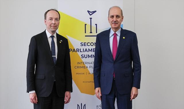 Prag Kongre Merkezi'nde Zirve kapsamında gerçekleştirilen görüşmelerde, parlamentolar arası ilişkiler, bölgesel ve küresel son gelişmeler ele alındı. Kurtulmuş, Finli mevkidaşı Halla-aho ile görüşmesinde, Kırım Platformunun önemine işaret ederek, Kırım konusunda Türkiye'nin çok yönlü desteğini güçlü şekilde göstermek için Zirveye üst düzey katılım sağladıklarını belirtti.Ukrayna'nın egemenliğine ve toprak bütünlüğüne her platformda destek verdiklerini dile getiren Kurtulmuş, Türkiye'nin hem Ukrayna hem de Rusya ile konuşabilen tek ülke olduğunu, bu doğrultudaki çabalar ve arabuluculuklar sonucunda Tahıl Koridoru Anlaşması ve esir değişimi gibi somut kazanımlar sağlandığını belirtti.Kurtulmuş, görüşmede, İsrail-Filistin çatışmasında 2,3 milyon insanın Gazze Şeridi'nde sıkıştığını, binaların bombalanarak masum sivil, kadın, çocukların öldürüldüğünü anımsatarak, dünya kamuoyunun bu konuda insani bir tutum sergilemesi gerektiğini ifade etti.Finlandiya Meclis Başkanı Halla-aho ise Türkiye-Finlandiya ilişkilerinin köklü tarihi geçmişe dayandığını söyledi.İki ülke arasındaki dostluk anlaşmasının 100'ncü yılına girdiğini dile getiren Halla-aho, bunu farklı etkinliklerle kutlamak istediklerini belirtti.Çekya Senato Başkanı Vystrcil ile görüşmeTBMM Başkanı Kurtulmuş, Çekya Senato Başkanı Vystrcil ile yaptığı görüşmede ise Kırım Platformu 2'nci Parlamenter Zirvesine ev sahipliği yapmalarından dolayı teşekkür ederek, programın başarılı şekilde tamamlandığını söyledi.İsrail-Filistin çatışmasında yaşanan insani krizlere dikkati çeken Kurtulmuş, Gazze'de bir an önce ateşkesin sağlanarak insani yardımların bölgeye ulaştırılması gerektiğini vurguladı.Kurtulmuş, 1967 sınırlarında, başkenti Kudüs olan tam manasıyla bağımsız bir Filistin devletinin kurulması, Filistinlileri evlerinden eden Yahudi yerleşimci sorunlarının çözülmesi ve Müslümanların, Hristiyanların, Musevilerin kutsal mekanlarının masuniyetinin sağlanarak korunması gerektiğinin altını çizdi. Muhabir: Ali Kemal Akan