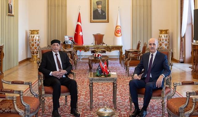 TBMM Başkanı Numan Kurtulmuş, "Libya'da birliği, beraberliği, kardeşliği görmek istiyoruz, siyasi istikrarı görmek istiyoruz. Siyasi istikrarın sağlanabilmesi için de Türkiye olarak her türlü imkanımızla Libya halkının yanında olduğumuzu bir kere daha ifade etmek istiyorum." dedi. Kurtulmuş, Libya Temsilciler Meclisi Başkanı Akile Salih ile TBMM'de bir araya geldi.Kurtulmuş ve Salih, baş başa görüşmenin ardından heyetler arası toplantıya başkanlık yaptı.Libya Temsilciler Meclisi Başkanı Salih ve heyetini TBMM'de ağırlamaktan duyduğu memnuniyeti dile getiren Kurtulmuş, iki ülkenin tarihi ve kültürel bağlara sahip olduğunu, pek çok müşterek işbirliği konularının bulunduğunu belirtti.Birinci Dünya Savaşı sırasında Türk ve Libya halklarının emperyalistlere karşı aynı cephede savaştığını dile getiren Kurtulmuş, Kıbrıs Barış Harekatı sırasında da Libya hükümetinin ve halkının verdiği desteğin asla unutulmayacağını ifade etti.Türkiye-Libya arasındaki ilişkileri daha ileri noktaya götürebilmek için her türlü imkana sahip olunduğunu ifade eden Kurtulmuş, gelecek dönemde müşterek çalışmalarla iki ülke arasındaki işbirliklerinin daha ileriye taşınacağını vurguladı.Kurtulmuş, "Türkiye'nin Libya'yla ilgili birinci önceliği, Libya'da öncelikle siyasi istikrarın sağlanması ve bununla birlikte refahın, iktisadi gelişmenin en kısa süre içerisinde çok daha ileri noktalara götürülmesidir." diye konuştu.Şu anda ikiye bölünmüş olan Libya'daki siyasi erkin, tek bir erk altında toplanmasını temin etmenin ortak vazife olması gerektiğinin altını çizen Kurtulmuş, şunları söyledi:"İki ay önce Libya Yüksek Devlet Konseyi Başkanı Muhammed Takala'yı burada ağırlamıştık. Bir tarafında Trablus'un bir tarafta Bingazi'nin olduğu, ortadan ikiye bölünmüş ve siyaseten neredeyse yönetilemez hale gelmiş olan Libya, bizim görmeyi arzu ettiğimiz Libya değildir. Libya, gerçekten çok önemli kaynaklara sahip olan, esasında Kuzey Afrika'nın en zengin ülkelerinden birisidir. Etrafımızdaki gelişmeler bize bir şeyi çok net bir halde öğretiyor. O da şudur. Emperyalizmin bu bölgedeki yeni oyunu, bir asır evvel yaptığı oyunun birebir aynısıdır. Böl, parçala, yönet taktiğidir. Buna ciddi şekilde karşı çıkmamız ve ülkelerimizin daha fazla bölünmüşlüğünü ortadan süratle kaldırmamız gerekir.Sadece çok yakın döneme baktığımız zaman bile bu bölünmüşlüğün ne kadar ağır bir sonuç ortaya çıkardığı aşikardır. 1990'ların başında Amerika'nın Irak'ı işgaliyle başlayan süreçte, maalesef Orta Doğu ve Kuzey Afrika ülkeleri paramparça hale getirilmiştir. Irak, Suriye bölünmüştür, Lübnan siyaseten bölünmüştür, Mısır siyaseten bölünmüştür, Libya fiilen bölünmüştür, Yemen bölünmüştür. Bütün bu dağınıklığın içerisinde bu ülkelerin halklarının, bu bölünmüşlüğün hiçbir tarafının kazandığını söylememiz mümkün değildir. Kazanan da bellidir. Bu ülkelerin halklarına düşman olanlar maalesef bu bölünmüşlükten büyük bir kazanç elde ediyorlar.""Libya'da birliği, beraberliği, kardeşliği görmek istiyoruz"İsrail'in Gazze'ye yönelik saldırılarına işaret eden Kurtulmuş, şu değerlendirmeyi yaptı:"İsrail'in en büyük gücü ne askeri gücüdür ne dünya siyasetinde sahip olduğu lobileridir ne dünya finans sistemindeki gücüdür ne dünyadaki medya sektörü üzerindeki gücüdür ya da arkasında ABD'nin olmasıdır. İsrail'in en büyük gücü İslam coğrafyasının ve bölge ülkelerinin paramparça olması ve siyaseten bölünmüş olmasıdır. Bu gerçeği bir kere daha göz önünde bulundurarak Türkiye olarak diyoruz ki bizim gönlümüzden geçen, her alanda birleşmiş, bütünleşmiş bir millet olarak Libya'nın geleceğe çok daha güçlü yürümesini, çok daha kuvvetli adımlarla ilerlemesini görmektir. Bunun için Libya'nın, bütün şehirleriyle geleceğe güçlü bir şekilde yürümesidir. Bunun için biz Libya'da birliği, beraberliği, kardeşliği görmek istiyoruz, siyasi istikrarı görmek istiyoruz. Siyasi istikrarın sağlanabilmesi için de Türkiye olarak her türlü imkanımızla Libya halkının yanında olduğumuzu bir kere daha ifade etmek istiyorum.""Türkiye, Libya halkına her zaman destek oldu"Libya Temsilciler Meclisi Başkanı Salih de TBMM'de bulunmaktan memnuniyet duyduklarını belirterek, bu ziyaretin iki ülke halkı arasında işbirliğinin daha da gelişmesine vesile olmasını diledi.Türkiye'nin Filistin'e güçlü bir destek verdiğini dile getiren Salih, "Cumhurbaşkanı Recep Tayyip Erdoğan'ın tutumunu ve duruşunu unutmayacağım. Kendisi gerçekten güçlü bir şekilde Filistin davasına destek vermektedir. Filistin halkı bu destekten yararlanarak kendi bağımsız devletini kuracaktır ve başkenti Kudüs olacaktır. İsrail de Filistin halkına karşı işlediği cinayetlerin bedelini bir gün ödeyecektir." ifadelerini kullandı.Türkiye'nin Libya halkına da her zaman destek olduğunu ifade eden Salih, özellikle Türk firmalarının Libya'da büyük işlere imza attığını söyledi.Salih, Türk firmalarının Libya'ya dönüp orada yapı ve yeniden imar konusunda faaliyete geçmesini istediklerini belirtti.Libya'daki sel felaketi dolayısıyla Türkiye'nin yardımlarına da teşekkür eden Salih, sel felaketinin etkilerinden kurtulma konusunda Türkiye'nin büyük rol oynadığını söyledi.Görüşmede, Türkiye-Libya Parlamentolar Arası Dostluk Grubu Başkanı AK Parti Samsun Milletvekili Ersan Aksu, AK Parti Ankara Milletvekili Murat Alparslan, AK Parti Kocaeli Milletvekili Cemil Yaman, TBMM Genel Sekreteri Talip Uzun, Libya'nın Ankara Büyükelçisi Mustafa el-Kuleyb de yer aldı.Kurtulmuş görüşmenin ardından Libya Temsilciler Meclisi Başkanı Salih ve heyeti 