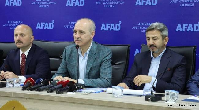 Devlet olarak ilk andan itibaren bu toprakların görmüş olduğu belki tarihteki en büyük yıkımlardan birisiyle karşılaştıklarını dile getiren Kurtulmuş, ilk günlerde defaatle Adıyaman ve diğer illere geldiklerini ifade etti.Kurtulmuş, depremlerin tabiri caizse küçük kıyamet, hatta kıyametin bir provası olduğunu ve çok büyük kayıplar verdiklerini belirterek, şöyle konuştu:"Adıyaman'da da 8 bin 337 vatandaşımız depremde hayatını kaybetti. Allah rahmet eylesin çok acı hikayelere şahit olduk. Bugün de dün de dinlediğimiz hikayeler, bildiğimiz ağır kayıplar, ağır böyle gönül hüznüyle takip ettiğimiz hikayelere şahit olduk. Ailesinden çok sayıda insanı kaybeden çok sayıda yakınını hayattan kopmuş olan insanlarla karşılaştık. Depremin ilk anından itibaren milletçe sahip olduğumuz en büyük hasletlerden birisi devreye girdi. Hamiyetperverlik, yardımseverlik, dayanışma duygusu, arkadaşının, vatandaşının, komşusunun, milletinin, soydaşının bir şekilde yarasına merhem olabilme kaygısı 85 milyon vatandaşımızı harekete geçirdi. Hem kamu kurum ve kuruluşlarının ilk andan itibaren sahada çok etkin müdahaleleri, aynı zamanda sivil toplum kuruluşlarımızın ve vatandaşlarımızın cansiparane çalışmaları o büyük felaketin, o büyük yıkıntının hemen ertesinde kısa süre içerisinde yaraları sarmak için seferber olundu."Depremin hemen ardından insanların barınma ve yiyecek ihtiyaçlarının karşılandığını anımsatan Kurtulmuş, çadırların ardından depremzedelerin konteynerlere yerleştirildiğini hatırlattı.Kurtulmuş, devletin depremzedelerin yanında olduğunu vurgulayarak, "Süratle kalıcı konutlara geçilmesi için seferberlik vaktidir. Bununla ilgili olarak da devlet elindeki bütün imkanları kullanarak depremzede vatandaşların yanındadır. Topyekün büyük bir seferberlikle Allah'ın izniyle kısa bir süre içerisinde kalıcı konutların tamamlanacağına yürekten inanıyoruz." diye konuştu.Ekim ayından itibaren tamamlanan kalıcı konutların hak sahiplerine verileceğini aktaran Kurtulmuş, böylece orta vadede insanların barınma sorununun çözülmesinin planlandığını söyledi."Türkiye sadece deprem değil afet bölgesi"