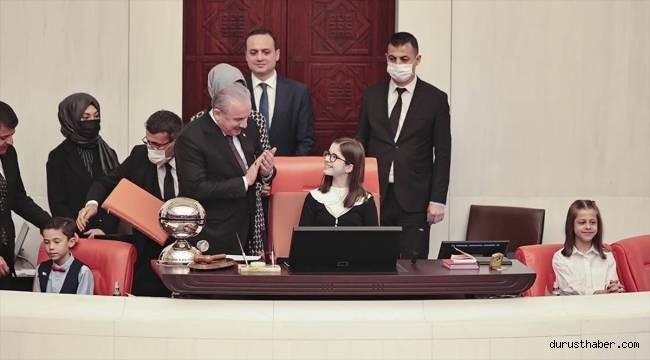 TBMM Başkanı Şentop koltuğunu 6. sınıf öğrencisi Havva Dilay Gülez'e devretti
