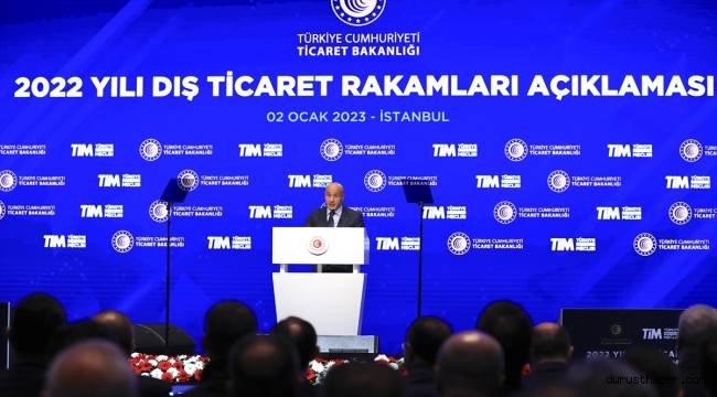 2022 yılı dış ticaret rakamları Cumhurbaşkanı Recep Tayyip Erdoğan ile Ticaret Bakanı Mehmet Muş'un katılımıyla açıklandı.