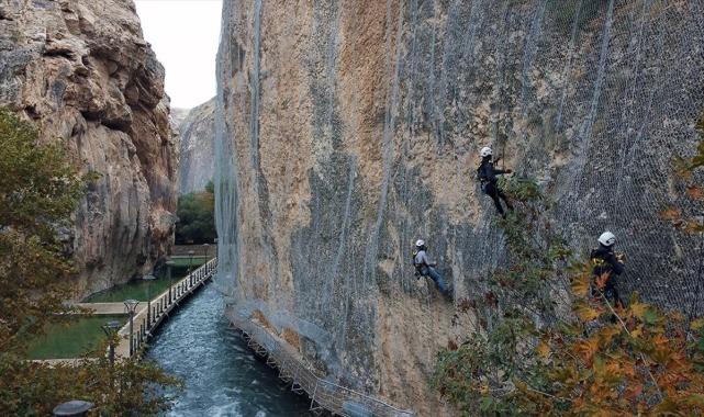 Malatya Valiliği ve Büyükşehir Belediyesi tarafından yapılan incelemenin ardından, kanyonun yamaçlarında tehlike arz eden kayaların düşürülmesi ve çelik ağla yüzeyin kaplanması için çalışma başlatıldı. Profesyonel dağcılardan oluşan ekip, halatlar yardımıyla tırmandıkları yamaçlarda riskli kayaları düşürerek çelik ağın yamaca sabitlenmesi için belirlenen 1144 noktaya delik açtı. Çelik ağın bu noktalardaki aparatlara sabitlenmesiyle örtüleme çalışmasının ilk etabı tamamlandı. Bin metrekarelik yüzeyin 80 metrekaresini çelik ağ ile örten ekibin çalışmalarını 2 yılda tamamlaması planlanıyor. Muhabir: Ayhan İşcen