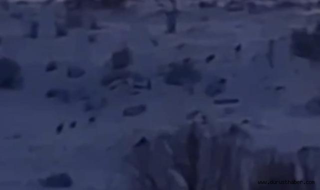 Kayseri’nin Tomarza ilçesinde kurt sürüsü cep telefonu kamerası ile görüntülendi.
