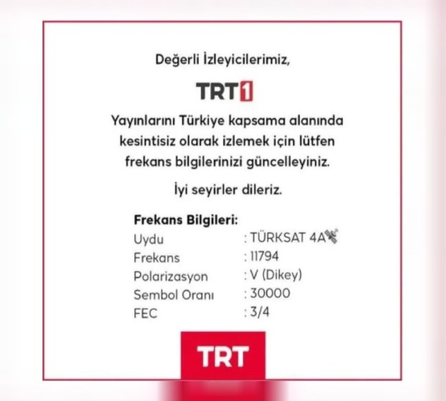 Türkiye geneli yayın yapan ve en çok izlenen kanallardan olan TRT1 açanlar neden siyah ekran ile karşılaştığını araştırmaya başladı. TRT1 izleyicileri bu sorunun neden olduğunu ve ne zaman düzeleceğini merak etti. TRT1 neden siyah ekran? TRT1 frekans ayarları ve sorun giderme yöntemleri haberimizde yer almaktadır.TRT 1 NEDEN AÇILMIYOR?Dünya Kupası 2022 maçları TRT 1 ekranlarında yayınlanırken kanalın frekans ayarları ise güncellendi. Bu nedenle televizyonlarda TRT 1 açılmayıp siyah ekran karşımıza çıkıyor. TRT 1 ekranlarını canlı olarak izlemek için öncelikle frekans ayarlarını yapmak gerekir.TRT1 NEDEN SİYAH EKRAN?2022 Dünya Kupası maçlarının yayınlanacağı TRT 1 ekranlarını açan izleyiciler siyah ekran ile karşılaştı. Bunun ardından ise maçı izleyecek olanlar bu sorunun nasıl çözüleceğini araştırdı. TRT1 ekranlarının maça özel frekans ayarları girildiğinde sorunsuz olarak izlenebileceği açıklandı.