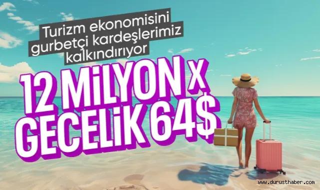 Diğer tatil destinasyonlarının hiçbirinde olmayan bu avantaj özellikle krizli dönemlerde sektörün can simidi oluyor. Yurt dışında yaşayan Türklerin çoğunluğunun en az iki kez seyahat ettiğini ve özellikle Türkiye'yi seçtiğinden yola çıkarak, önümüzdeki birkaç yıl içinde yaklaşık 15 milyonluk potansiyele ulaşması mümkün. Kıymetini bilelim." diye konuştu.YILIN İLK ÇEYREĞİNDE GECELİK ORTALAMA HARCAMA 64 DOLARBu kapsamda konuya ilişkin 2024 ilk çeyrek verilerine göre ise gurbetçilerin harcama alışkanlıkları dikkat çekiyor.Buna göre yılın ilk çeyreğinde gurbetçi vatandaşların gecelik ortalama harcaması 64 dolar oldu.Bu verinin yıl sonu verilerinde hangi seviyeye geleceği de merak konusu.
