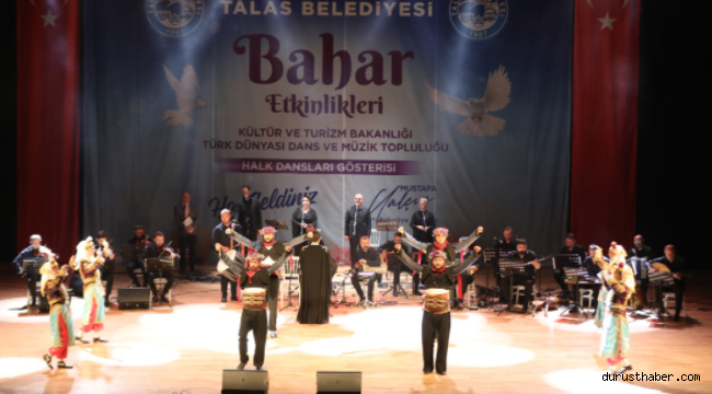 Talas Belediyesi ‘Bahar Etkinlikleri’ kapsamında muhteşem bir geceye daha imza attı. Kültür ve Turizm Bakanlığı Türk Dünyası Dans ve Müzik Topluluğunun sahne aldığı organizasyonda yöresel ezgiler seslendirilirken Türk dünyasına özgü figürlerle danslar ve halk oyunları sergilendi.Erciyes Kültür Merkezi’nde gerçekleşen etkinliğe vatandaşların ilgisi büyük oldu.Etkinlikte, Türk Dünyası Dans ve Müzik Topluluğu üyesi sanatçılar Türki Cumhuriyetlerden ve Anadolu’dan birçok seçkin eseri geceye katılanlarla buluşturdu. Türk dünyasından yöresel dans ve oyunların da sergilendiği etkinlikte Anadolu’ya özgü halay ve horon da sahnelendi.
