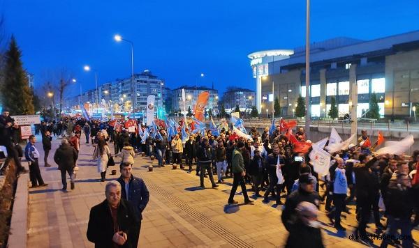 Meydanda gerçekleştirilen yürüyüş sonrası düzenlenen basın açıklamasında konuşan Türk Harb-İş Sendikası Kayseri Şubesi Başkanı Şerif Efe Avcı, “Savunma sanayii pirimi talep ediyoruz. Verimlilik teşvik piriminin arttırılması talep ediyoruz. Pirimlerimizin izin döneminde kesilmemesini talep ediyoruz. Üniversite okuyup mezun olan arkadaşlarım ve kardeşlerim için, söz verilip bir türlü yapılamayan mühendislik intibakınında bir an önce yapılmasını talep ediyoruz” dedi. Türk Harb-İş Sendikası Kayseri Şubesi Yönetimi askeri fabrika işçilerinin ücretlerinin düşüklüğüne dikkat çekmek için Cumhuriyet Meydanında yürüyüş düzenledikten sonra basın açıklaması gerçekleştirdi. Bu kapsamda konuşan Türk Harb-İş Sendikası Kayseri Şubesi Başkanı Şerif Efe Avcı, “26 binden fazla üyemizin, aldıkları ücretleri günümüz Türkiye koşutlarını göz önünde bulundurduğumuzda, ücretlerin çok düşük kaldığını ve hatta artık hayat pahalılığı karşısında yaşanılmayacak bir durum ortaya çıkardığını aktararak, özlük haklarında iyileştirme yapılmasını talep ettik. Bununla kalmadık, gelişen ve büyüyen ülkemize omuz vererek, ülkemizin savunma sanayisinin yüzde yüz millileşmesi için emek harcayan. Ülkemizin savunma sanayisinde dışa bağımlılığını bitirmek için canla başla çalışan üyelerimizin artık geçinemez bir noktaya geldiğini anlattık. Türk-Harb-İş sendikası olarak, 53 yıldır durmadan, duraksamadan emeğin ve emekçinin yanında yerimizi alarak, hakkı savunan bir anlayışla yolumuzda yürüyor, bu anlayışla atacağımız adımları bir bir atıyoruz. Bizim tek derdimiz bu kutsal topraklara bir halel gelmemesi, büyük ve güçlü devletimizin dara düşmemesi ve elbette ki, bu ülkenin öz evlatları olan arkadaşlarımızın kendi öz yurtlarında rahat bir yaşam sürmesini sağlamaktan ibarettir. Son olarak Türk Harb-İş sendikası olarak taleplerimizi bir kez daha belirtmek istiyorum. Savunma sanayii pirimi talep ediyoruz. Verimlilik teşvik piriminin arttırılması talep ediyoruz. Pirimlerimizin izin döneminde kesilmemesini talep ediyoruz. İş yerlerimizde çalışırken, gecesini gündüzüne katıp kendini daha iyi geliştirmek için çoluğunun çocuğunun daha iyi şartlarda hayatlarını devam ettirebilmek için üniversite okuyup mezun olan arkadaşlarım ve kardeşlerim için, söz verilip bir türlü yapılamayan mühendislik intibakınında bir an önce yapılmasını talep ediyoruz” ifadelerini kullandı. Türk-İş Kayseri İl Temsilcisi ve Koop-İş Sendikası Kayseri Şube Başkanı İdris Güven ise, “İşçimizin büyük sıkıntılar içerisinde yaşadığını herkes bilmektedir. Kamuda işçilerimiz arasında bir ücret dengesizliği olmuştur. İşçi arkadaşlarımızın ocak ayında aldıkları maaşla aralık ayında aldıkları maaş arasında gelir vergisinden dolayı çok büyük kayıplar olmakta. Gelir vergisinin düzeltilmesini Türk Harb-İş olarak hükümetten talep ediyoruz” şeklinde konuştu.