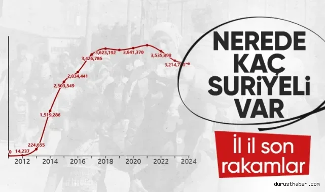 Düzensiz göç sorunu dünyayı etkilemeye devam ederken Türkiye de bu konuda ciddi problem yaşayan ülkelerden biri.Özellikle Suriye'deki iç savaştan kaçarak ülkemize sığınan Suriyeliler, bu alanda ciddi yoğunluk oluşturuyor.Kayseri'de yaşanan göçmen ve yabancı karşıtı çirkin provokasyonlardan sonra Türkiye'deki Suriyelilerin sayısı yeniden gündeme geldi.Toplam kayıtlı Suriyeli sayısı 3 milyon 112 bin 683Bu kapsamda İçişleri Bakanlığı Göç İdaresi'nin verilerine göre Türkiye'de geçici koruma statüsüne sahip, kayıtlı 3 milyon 112 bin 683 Suriyeli bulunuyor.İkamet izni ile yaşayanlar 76 bin 842Geçici koruma statüsüyle Türkiye'de bulunanlar dışında bir de ikamet izni ile Türkiye'de yaşayan Suriyeliler var.Bu kesim, ekonomik durumu nispeten daha iyi olan Suriyelilerden oluşuyor.Bu izinle Türkiye'de bulunan Suriyelilerin sayısı ise 76 bin 842.Suriyeli yoğunluğu olan ilk 10 şehirTürkiye'de yaşayan Suriyelilerin şehirlere dağılımı da bir başka merak konusu..İstanbul, ülkede en büyük Suriyeli nüfusuna sahip kent. Şehirde, 530 bin 506 geçici koruma statüsündeki Suriyeli yaşıyor.İstanbul'u Gaziantep, Şanlıurfa, Hatay, Adana, Mersin, Bursa, Konya, İzmir ve Ankara takip ediyor.Gaziantep'te 429 bin 855, Şanlıurfa'da 272 bin 788, Hatay'da 257 bin 90, Adana'da 218 bin 220, Mersin’de 201 bin 521, Bursa’da 171 bin 457, Konya’da 121 bin 947, İzmir’de 119 bin 671, Ankara’da ise 89 bin 743 Suriyeli yaşıyor.En az Suriyeli yaşayan illerTürkiye'de en az Suriyelinin yaşadığı kent ise sadece 8 Suriyeliyi barındıran Hakkari.Yine en az Suriyelinin yaşadığı kentlerden Tunceli'de 28, Bayburt’ta 34, Iğdır'da 63, Artvin'de 75 Suriyeli ikamet ediyor.Denetimlerde yakalanan kayıt dışı göçmenlerGöç İdaresi'nin verilerine göre 2024 yılında, 27 Haziran tarihine kadarki sürede 21 bin 387 Suriye uyruklu düzensiz göçmen yakalandı.2014'te 24 bin 984, 2015'te 73 bin 422, 2016'da 69 bin 755, 2017'de 50 bin 217, 2018'de 34 bin 53, 2019'da 55 bin 236, 2020'de 17 bin 562, 2021’de 23 bin 468, 2022’de 45 bin 909, 2023’te 58 bin 621 düzensiz Suriyeli göçmen yakalanmıştı.