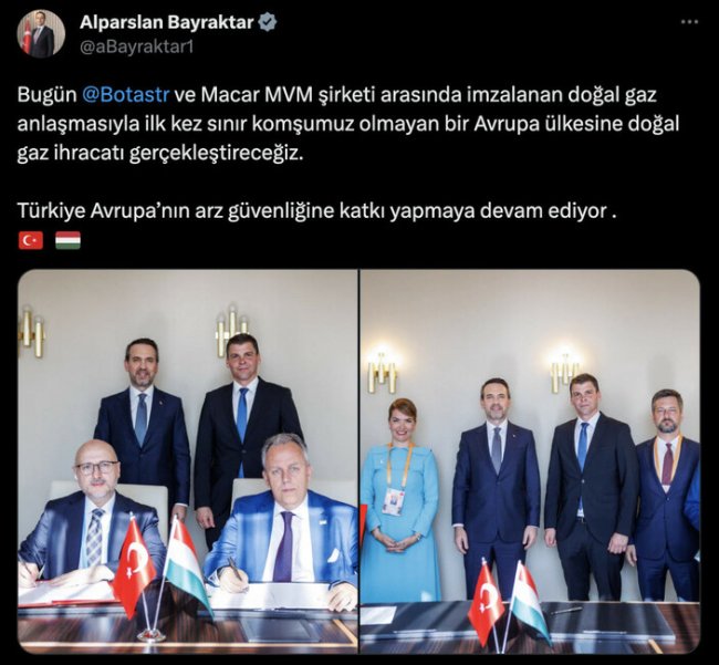 İki ülke arasında doğalgaz anlaşmasıZiyaretler sırasında heyetler arasında önemli anlaşmalar da yapıldı.BOTAŞ ve Macaristan'ın MVM şirketi arasında doğal gaz anlaşması imzalandı.Böylelikle Türkiye, ilk kez sınır komşusu olmayan bir Avrupa ülkesine doğalgaz ihracatı gerçekleştirecek.Enerji ve Tabii Kaynaklar Bakanı Alparslan Bayraktar, sosyal medya hesabından konuya ilişkin bir paylaşımda bulundu.