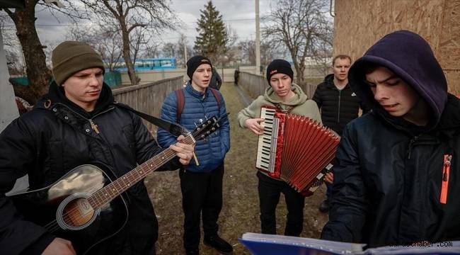 Özellikle şubatın sonundan nisanın ilk günlerine kadar yoğun çatışmaların olduğu yerleşim yerlerinde kalanlar, hala savaşın açtığı yaraları sarmaya çalışıyor.Yılbaşı gecesi yaklaşmasına rağmen yeni yılı karşılamak için fazla bir hazırlığın görülmediği köy ve kasabalarda birçok kişi, insani yardımlar sayesinde hayatlarını sürdürüyor. Ukrayna'da otobüsle yollara düşen kilise korosu, ülke genelinde savaşın izlerini taşıyan yerleşim yerlerini ziyaret ediyor, yıkılmış evler, yanmış arabaların arasında ilerliyor ve bölge sakinlerinin evlerinin kapılarını çalıyor.Savaşın acı yüzünü yansıtan köylerdeki evlerin bahçeleri ve kapı önlerinde halkın acısını paylaşan grup, sivillere yeni yıl hediyeleri dağıtırken uğradıkları her evin önünde şarkılarını seslendiriyor.Koronun ziyaret ettiği Borodyanka şehrine yakın Zahaltsi köyünde ahali, kapılarının önünde gençlerin söylediği şarkıları dinleyip aldıkları yeni yıl hediyeleriyle kısa süreliğine de olsa savaşın acısını unutarak gülümsemeye çalışıyor.Koroda gitar çalan 24 yaşındaki Aleksander Valkanov, AA muhabirine, yılbaşı gecesinden önce halka yardım dağıtarak moral vermeye çalıştıklarını belirtti.Arkadaşlarıyla Ukrayna'nın Rivne bölgesine bağlı Sarnı şehrinden yola çıktıklarını dile getiren Valkanov, "İnsanlara hediyeler dağıtmak, onlara şarkı söyleyerek mutluluk vermek için geldik." dedi. Yola çıktıkları otobüsle insani yardımı taşıdıklarını, ulaştıkları bölgelerde ihtiyaç sahiplerine gıda ve yardım malzemeleri dağıttıklarını kaydeden Valkanov, Kiev bölgesinde Buça, Gostomel ve İrpin şehirleri ile Vorzel kasabasını de ziyaret ettiklerini söyledi.Savaşın yarattığı zorlukları halka unutturmak için ekiple cephe hatlarına yakın şehirlere giderek yardım faaliyetleri gerçekleştirdiklerini anlatan Valkanov, "Siz de gördünüz, insanlar bizi görünce ağlıyor. Onlara umut vermeye çalışıyoruz. İnsanların çok yardıma ihtiyacı var." dedi.Halk, bizden yardım bekliyor