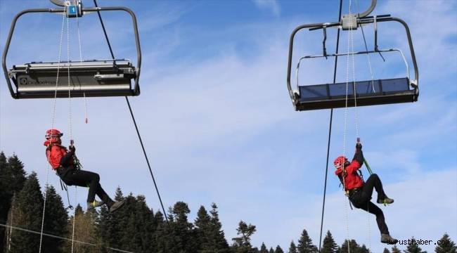 Uludağ'daki telesiyejlerde olası mahsur kalmaya yönelik tatbikat düzenlendi
